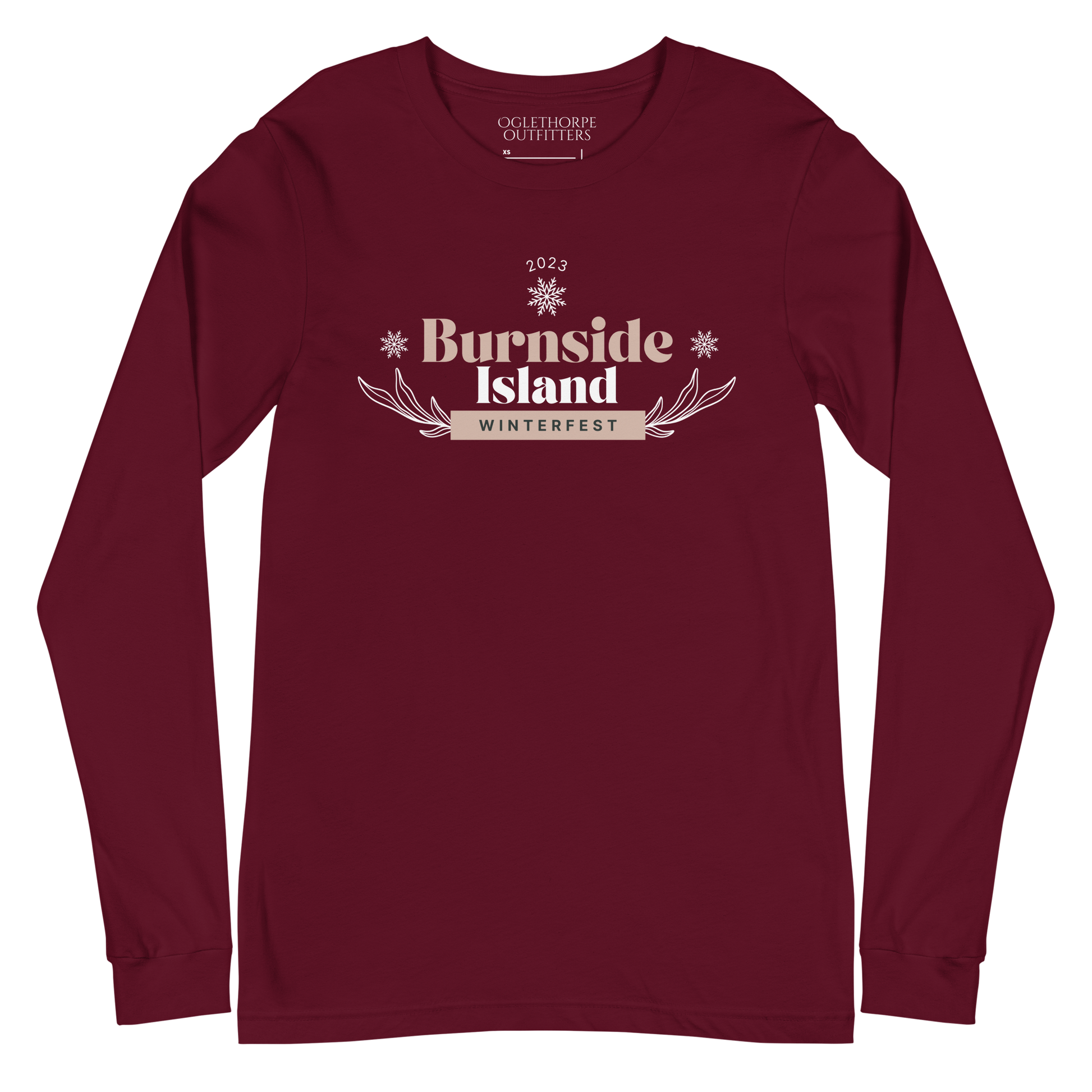Celebrate the joy of the season with the Burnside Island Winterfest 2023 Botanical Long-Sleeve T-Shirt – the perfect blend of coastal charm and festive flair for your coastal holiday celebrations. Embrace the spirit of Winterfest with this uniquely designed long-sleeve tee that captures the essence of the season and the beauty of Burnside Island.