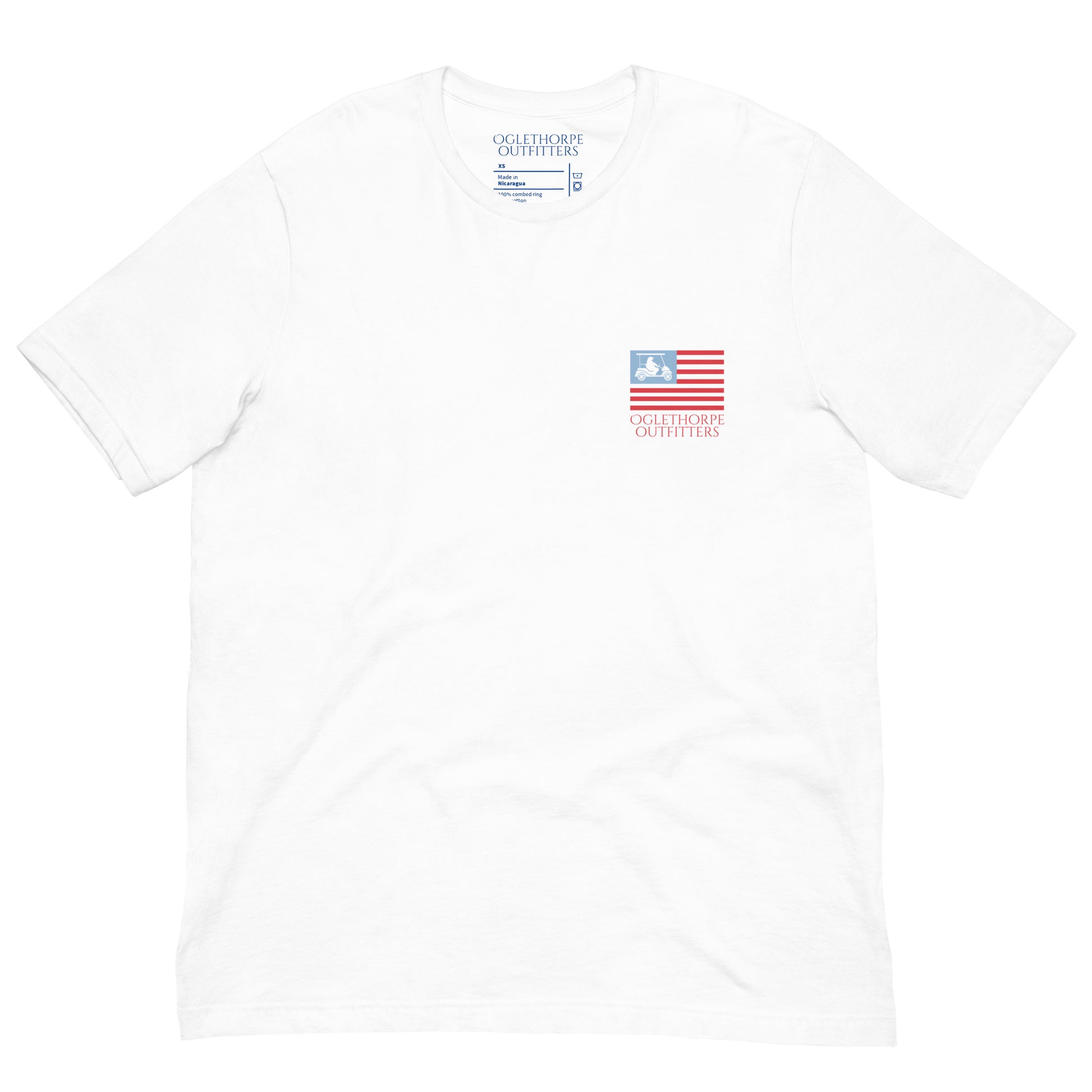 Embrace the carefree charm of a bear(!?) cruising in a golf cart on our Skidaway Island Bear Flag T-Shirt. The back of the t-shirt proudly displays the words "Skidaway Island," showcasing your love for this idyllic destination. The front features a smaller version of the bear flag insignia with the Oglethorpe Outfitters logo, adding a touch of character to your everyday style.