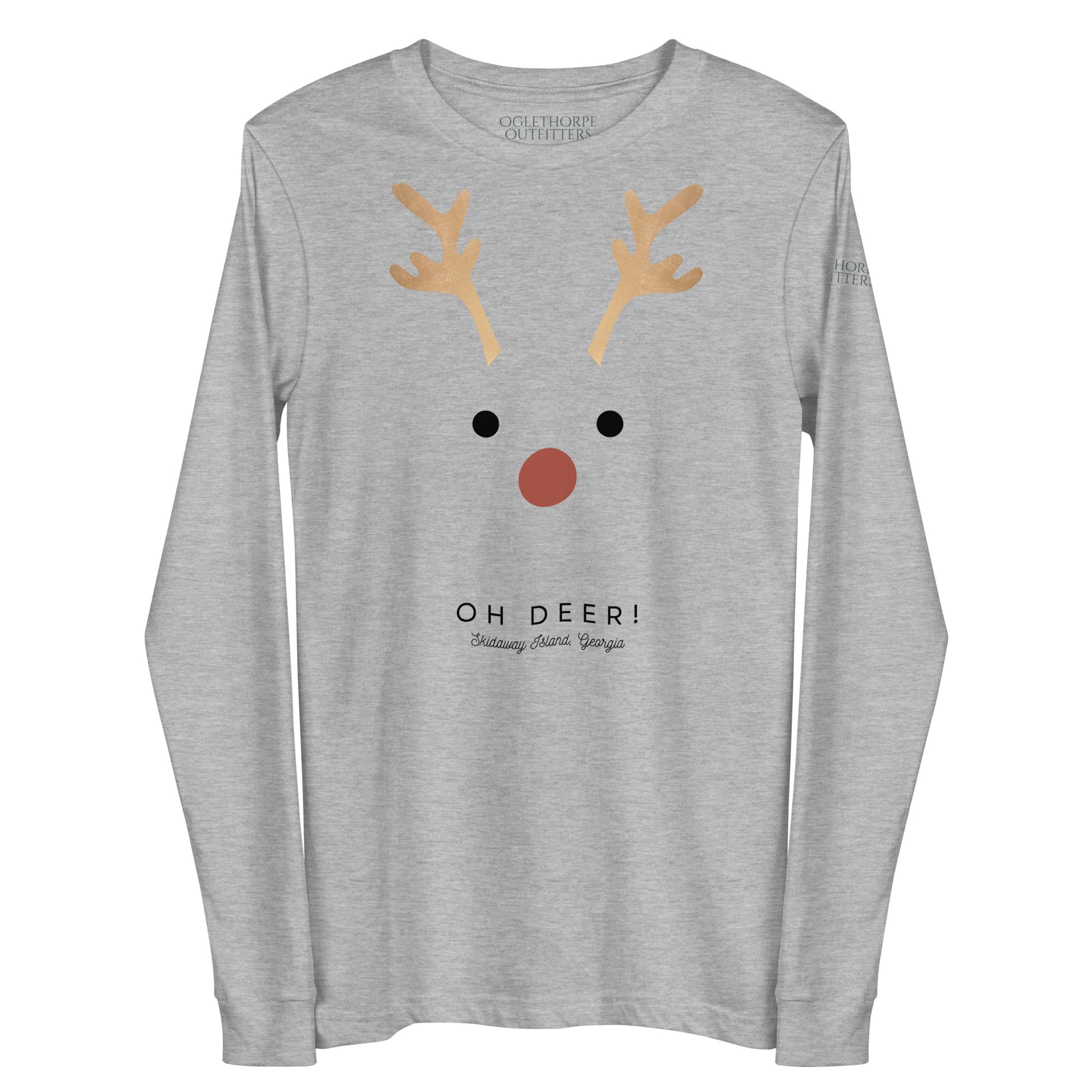 If you're ready to sleigh the fashion game this holiday season, snag our Burnside Island Oh Deer! Long-Sleeve T-Shirt faster than a squirrel chasing an acorn across Forsyth Park. Picture this: a startled reindeer face, eyes widened in sheer disbelief, as if it just heard the latest gossip from the moss-laden oaks of Skidaway Island. Crafted with the softness of a Georgia peach and the wit of a Savannah storyteller, this long-sleeve tee is the perfect blend of comfort and cheekiness. The reindeer's expression says it all – "Oh Deer!" – as if it is attempting to cross Green Island then notices a Tesla barreling its way at 70 MPH. Life is too short for boring shirts, and this one's a buck-load of fun!