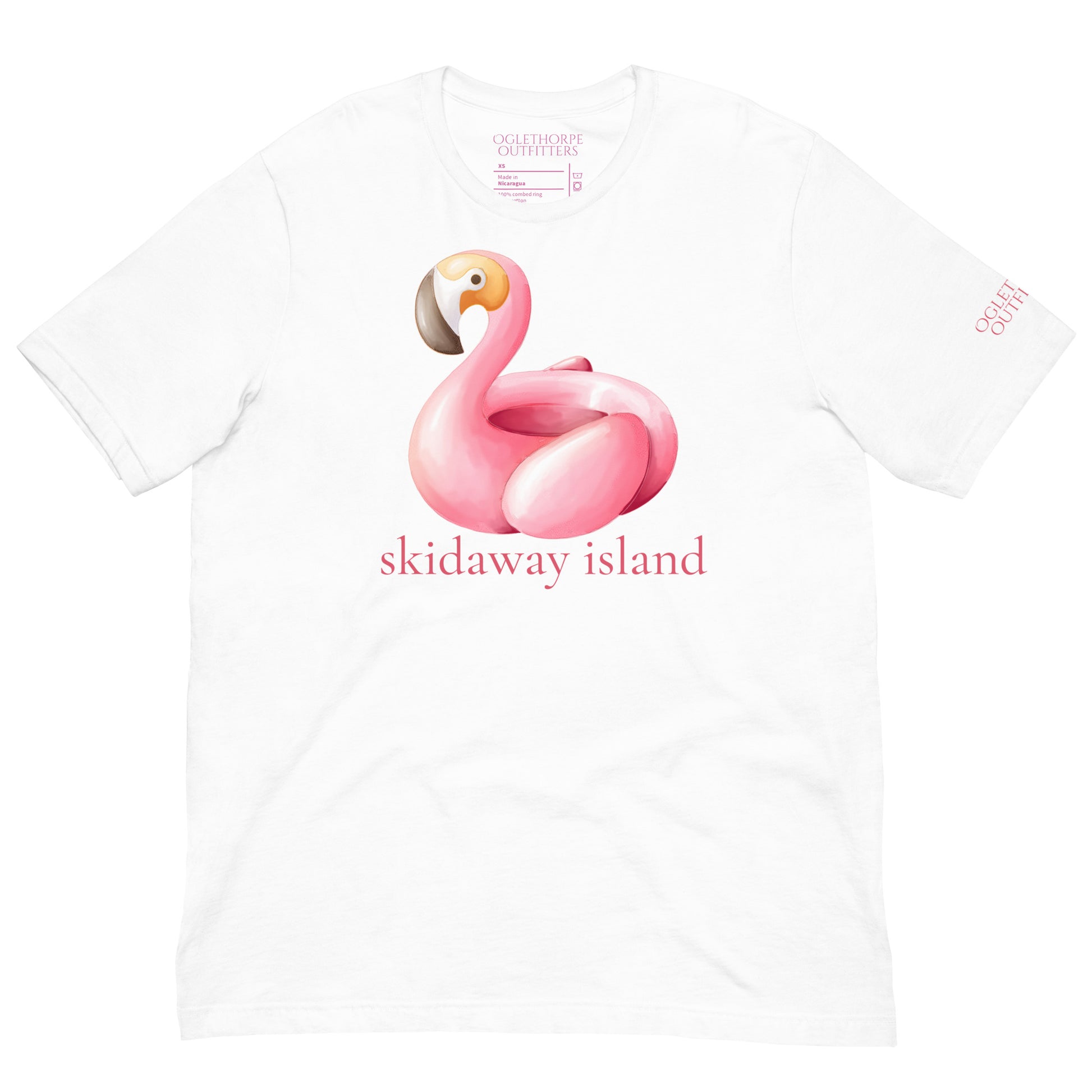 Indulge in the joys of summer with our Skidaway Island Summer Float T-Shirt! It features a lush, faithfully-reproduced watercolor image of an inflatable flamingo pool float. Let the playful spirit of this t-shirt transport you to the tropical paradise of Skidaway Island, where laughter and sunshine are abundant.